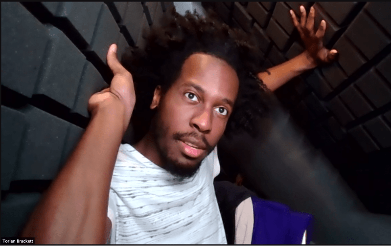 Torian Brackett’s passionate performance vividly captures the emotional complexity and contradictions of married life in Pat O’Neill’s effectively claustrophobic “The View from My Room.” In this case, Zoom adds value by virtue of a simulated trompe l’oeil backdrop that acts virtually as another character.